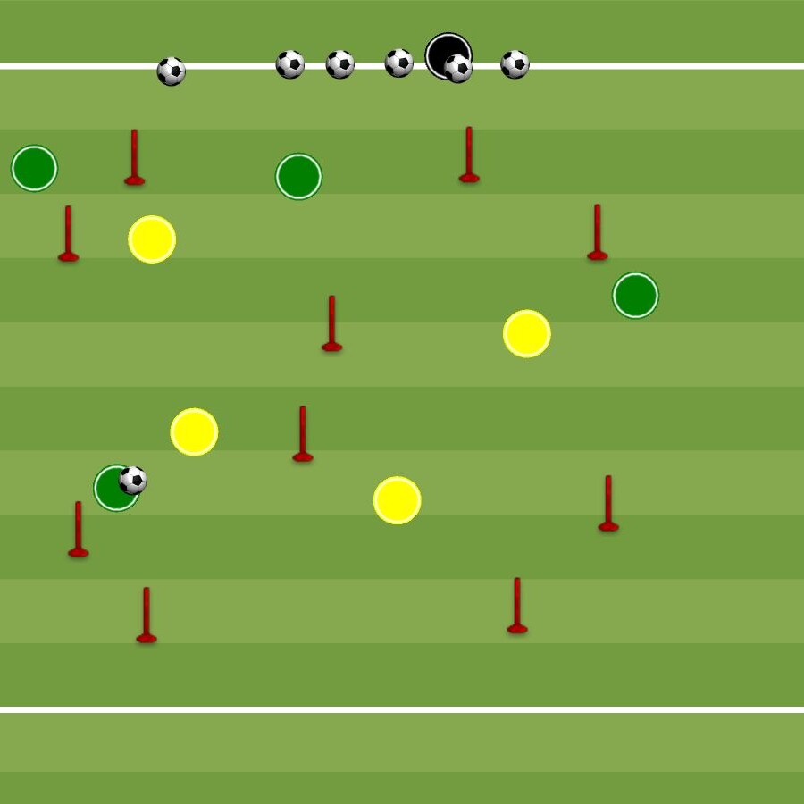 In una matrice di gioco con sei mini porte entrambe le squadre possono realizzare gol in ognuna di esse. Mentre la squadra in inferiorità numerica puo farlo non appena riconquista la palla, la…