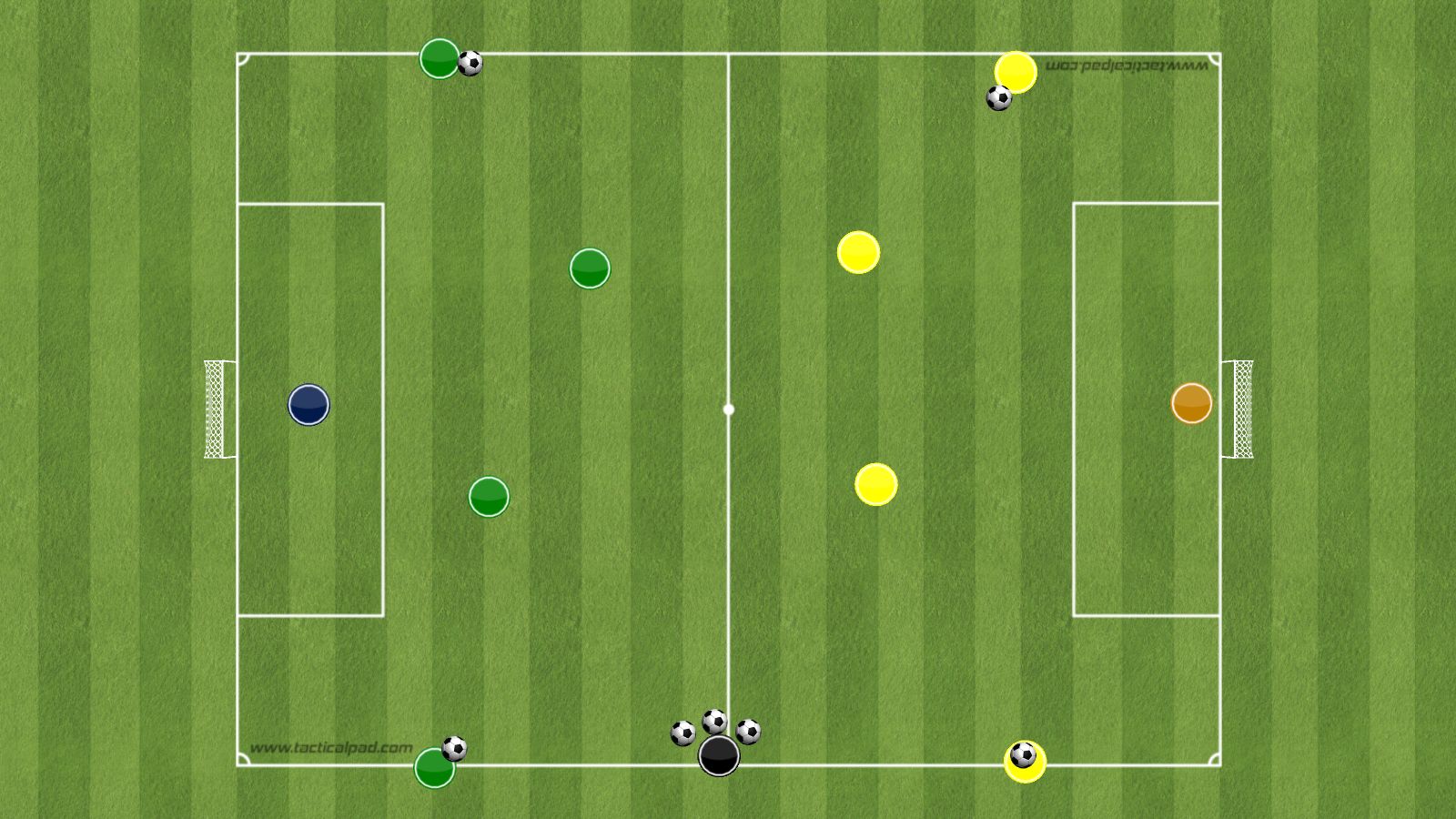 - é il tecnico a trasmettere palla scegliendo quale giocatore entra in gioco - é utile variare le posizioni di partenza dei giocatori in ingresso - assieme al giocatore in possesso entra in gioco anche un giocatore della squadra non in possesso dall’altro lato del campo